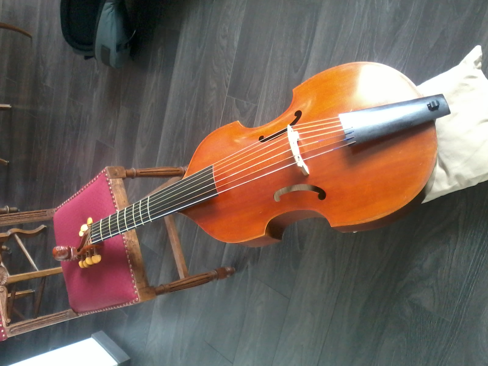 Je vends une basse de viole à 7 cordes, de Christophe Landon. Elle a un beau son chaleureux et elle est facile à jouer. Elle a déjà traversé quelques années : elle a été construite en 1976, et elle se porte comme un charme ! Elle vieillit bien et garde de très bonnes qualités sonores.