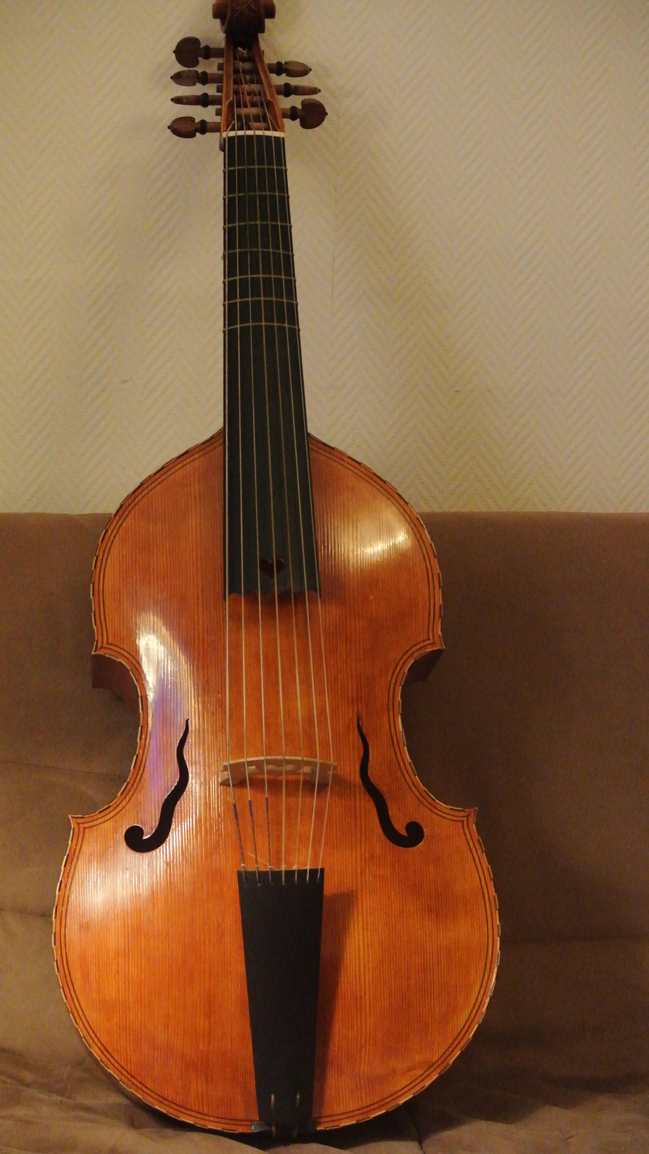 A vendre, cause nouvelle acquisition : basse de viole à 7 cordes, de Piotr Kowalzce, petit diapason - Très bien pour un amateur ou grand débutant, volute ajourée sculptée, confortable à jouer. Visible et disponible à l'essai dans le 20eme arrondissement de Paris - Fournie avec une housse ancienne. 3500€ (prix d'origine à la commande). Contactez Agnès 06 64 81 60 15