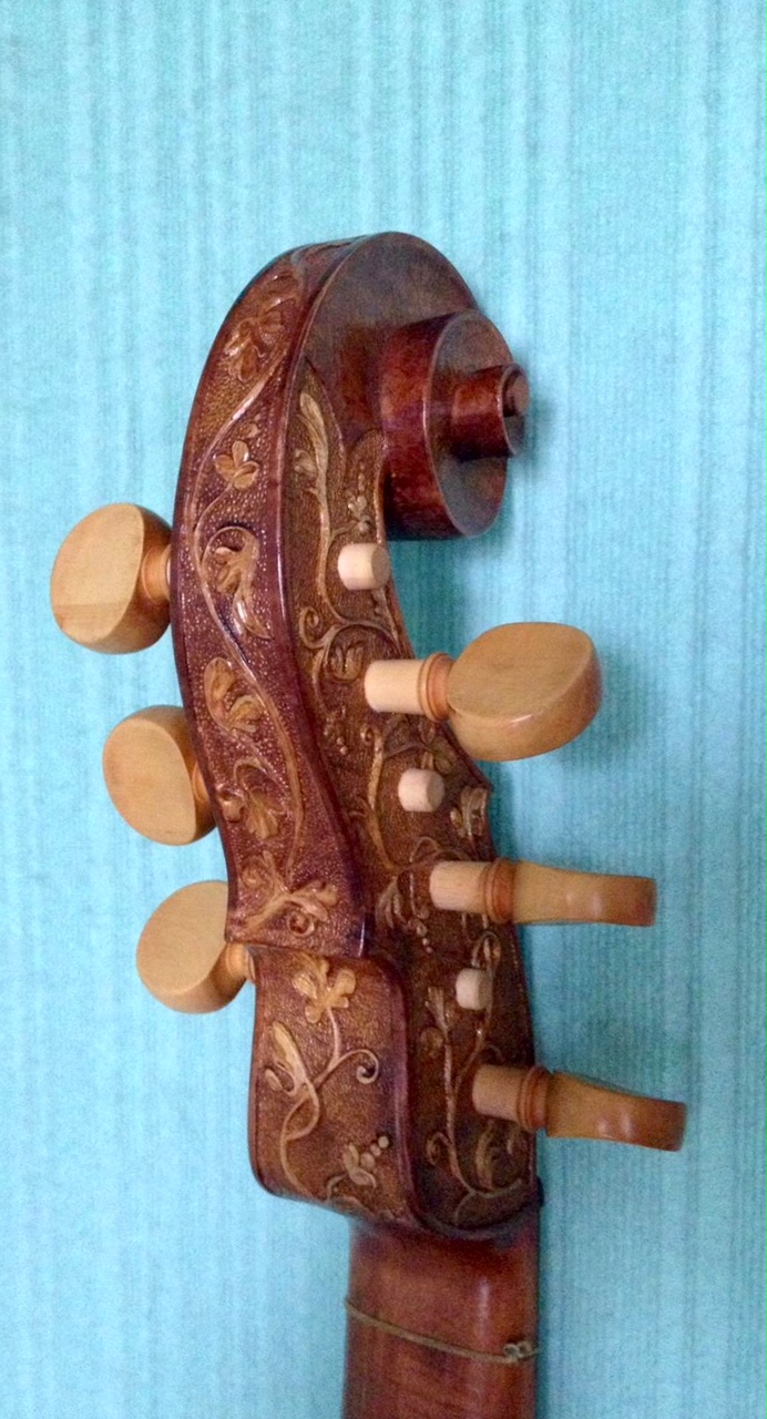 Diapason : 90 cm, cheviller sculpté, très belle facture instrumentale, parfait état,