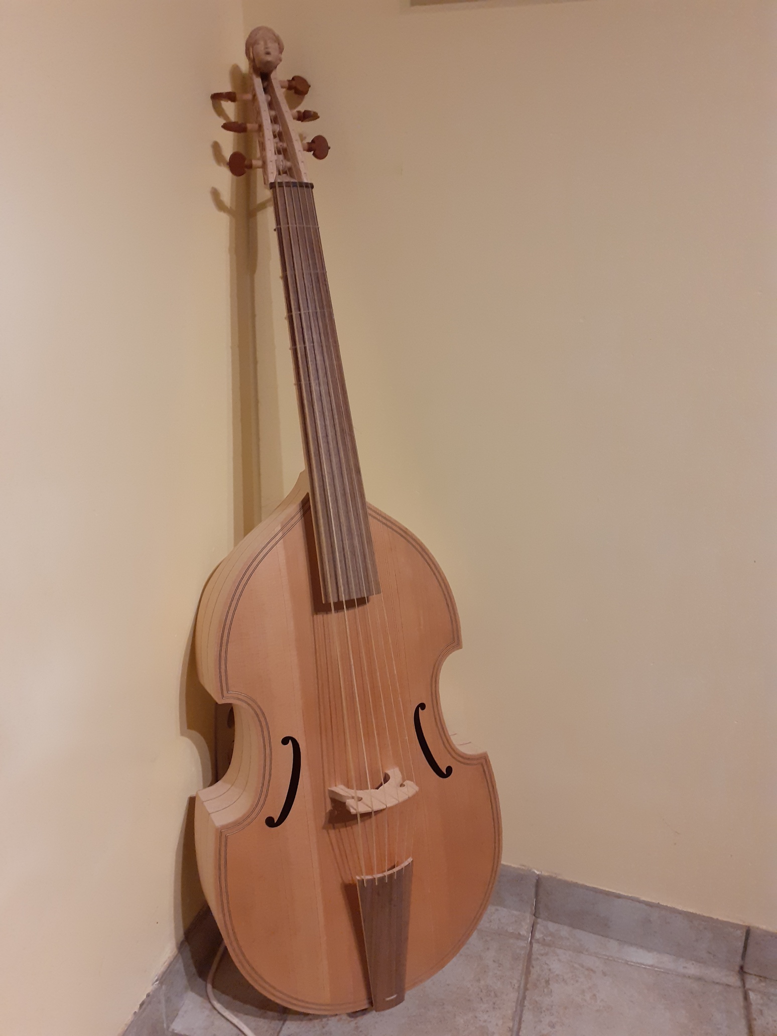 Belle basse de viole 6 cordes en parfait état, non signée, inspirée de Pieter Rombouts, longueur vibrante assez grande 77 cm, longueur de l instrument 129cm, caisse de résonance 70 cm, largeur 41 cm, voir sur Gand en Belgique a 60 km de Lille. Je suis luthiste et je n ai malheureusement pas assez de temps a lui consacrer. Prix 2000 euros Philippe Rennuy 0032496116628
