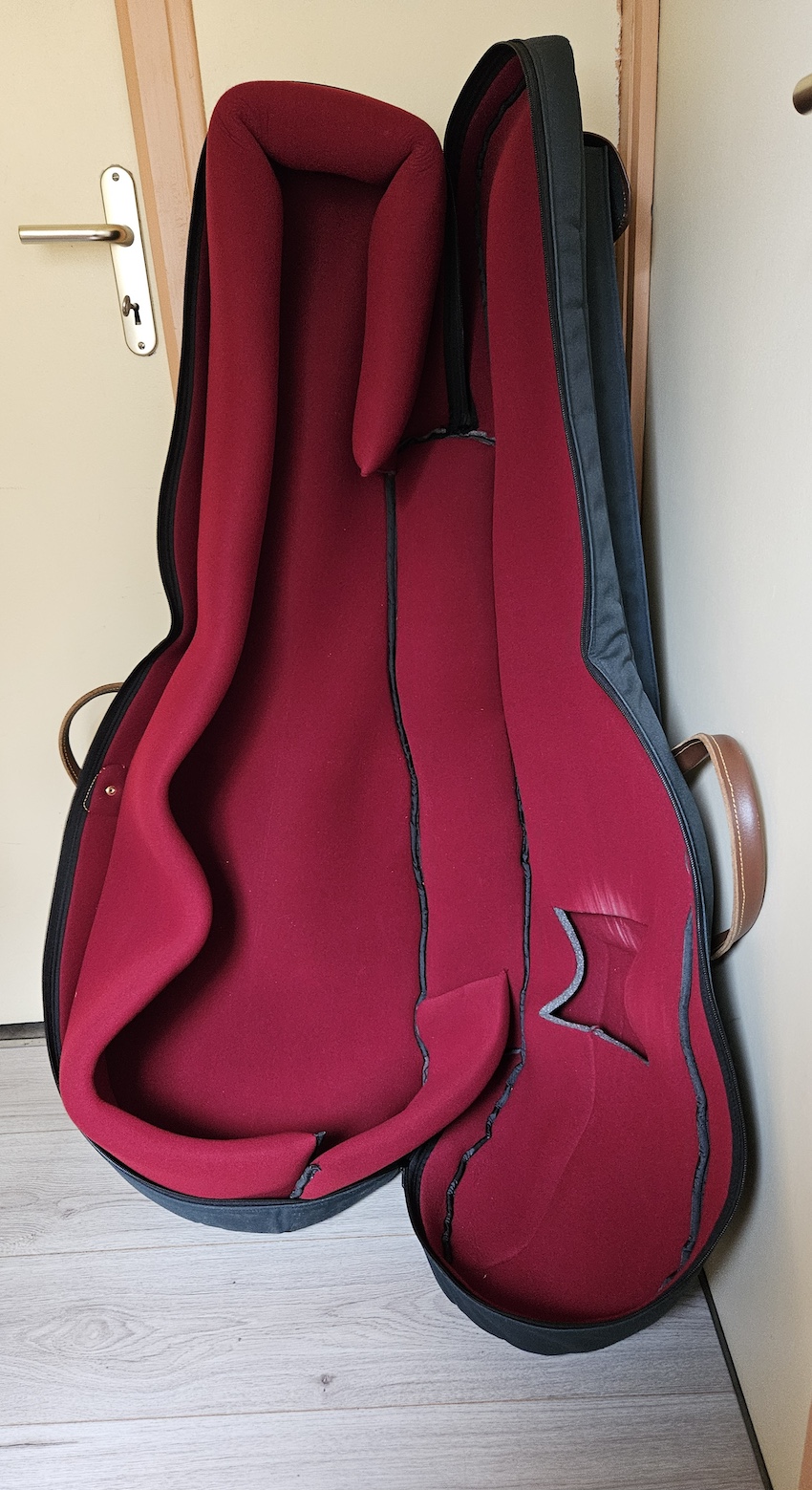 Housse pour violoncelle ou viole de gambe 6 cordes. Marque Supersac Excellente qualité, rembourrage épais très protecteur, et cependant une housse légère. Etui rembourré pour l'archet Bretelles pour portage en sac à dos Différentes pochettes partitions / colophane accordeur En très bel état Visible près de Lannion - 22 Envoi difficile compte-tenu de la taille....