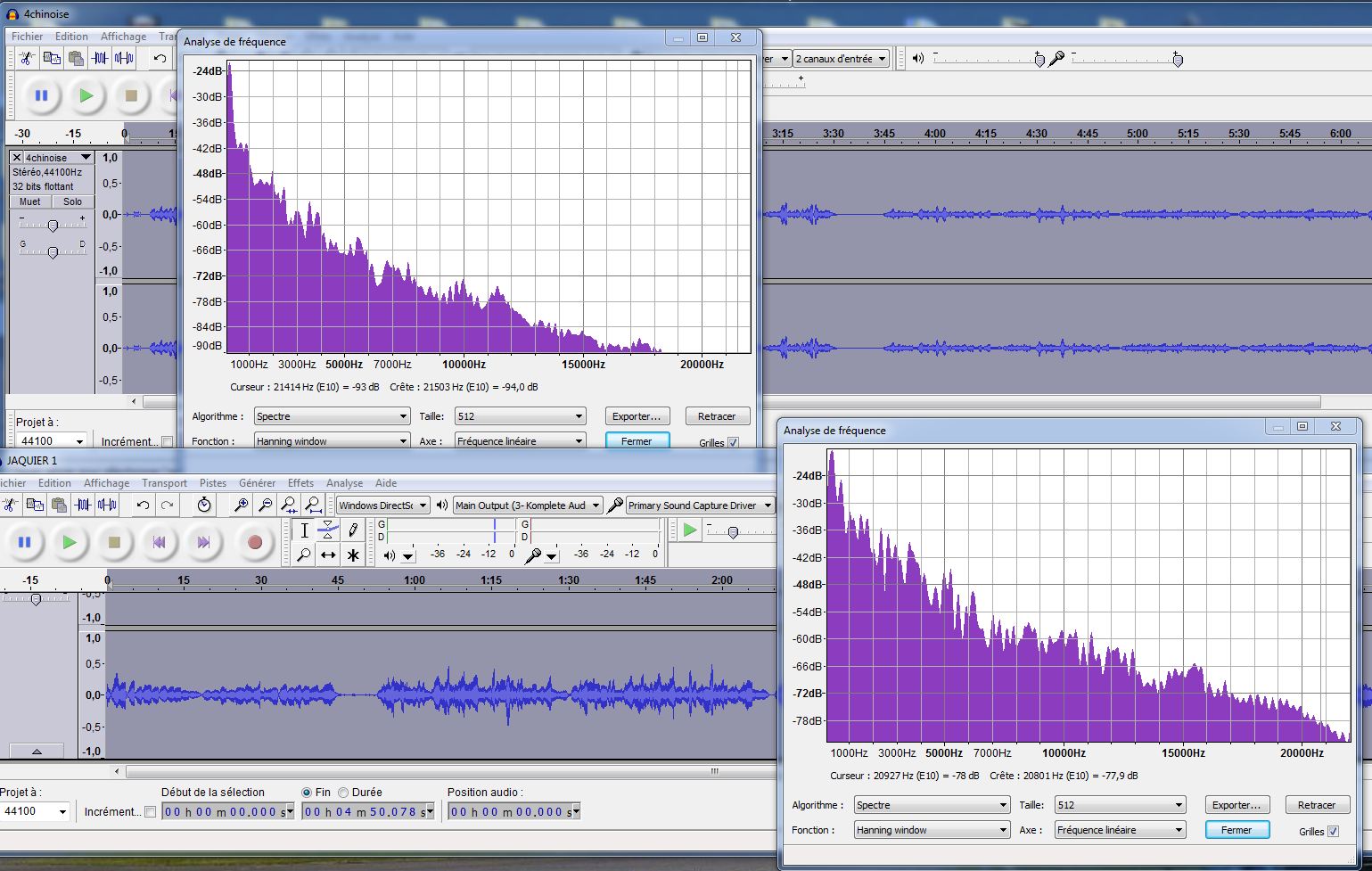 J'ai enregistré ce test de la viole Jaquier Ponticello avec un micro de moyenne game : RODE TN5 en 48HTZ - 24 BITS sur enregistreur Zoom puis j'ai enregistré la même chose avec ma viole chinoise. Puis j'ai monté les enregistrement sur mon Pc et avec mon logiciel audio j'ai comparé la qualité sonore des enregistrements, car je ne voulais pas me fier qu'à mon oreille, je craignais d'y avoir mis de la sbjectivité, ainsi avec ce fichier, je vois physiquement la différence entre les 2 instruments.