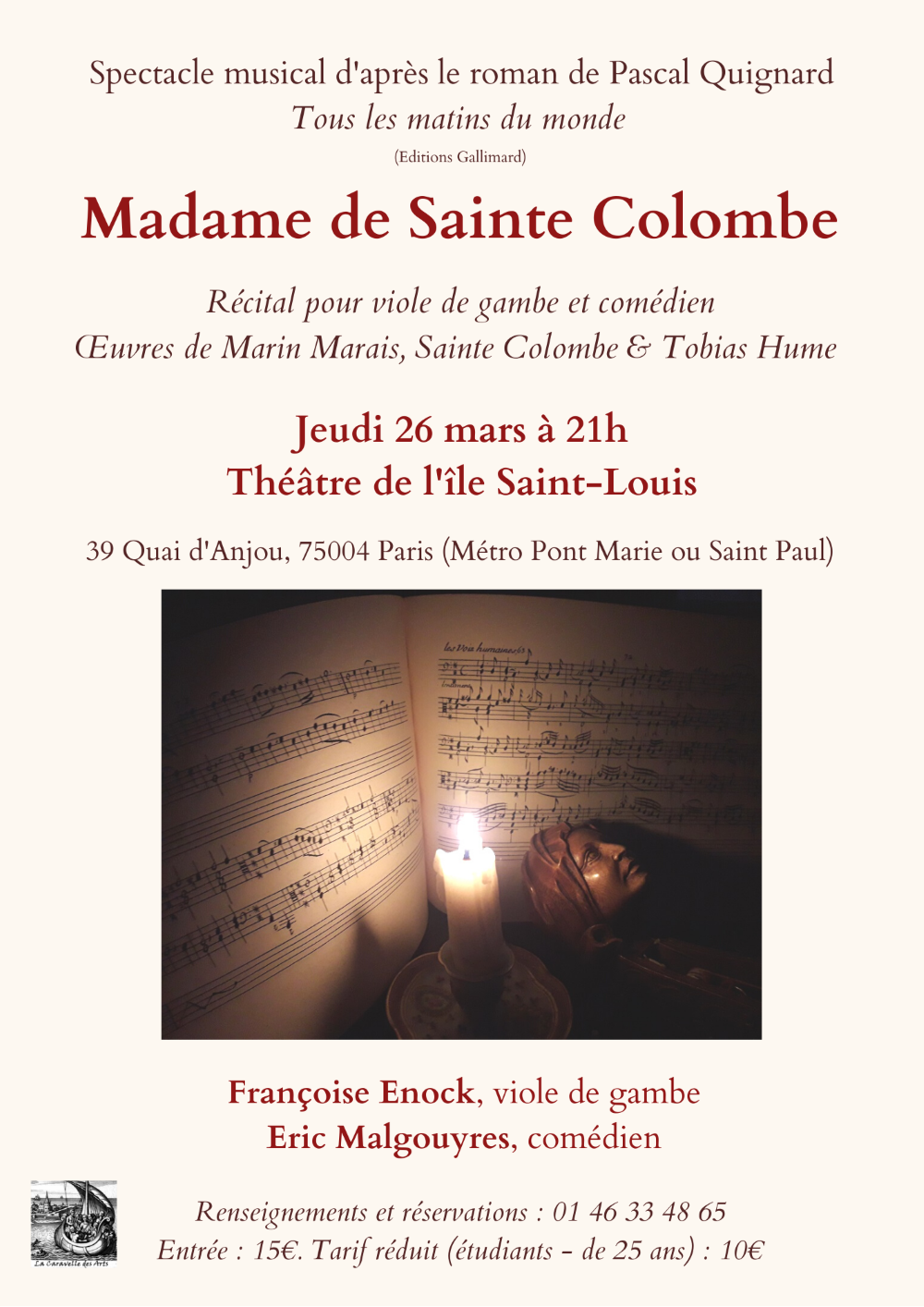 Une représentation du spectacle musical Madame de Sainte Colombe sera donnée prochainement à Paris :